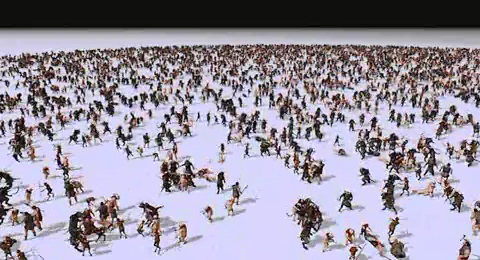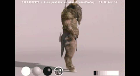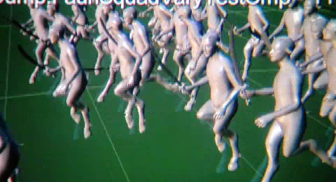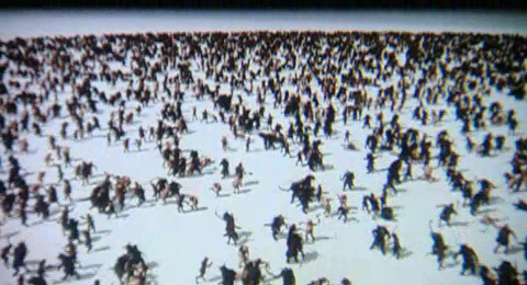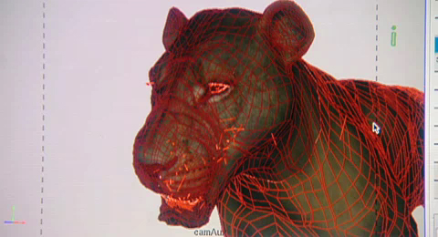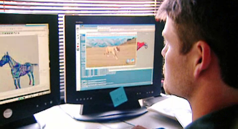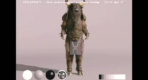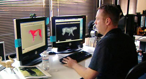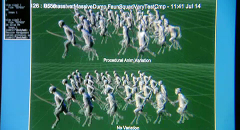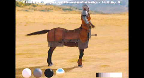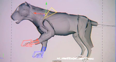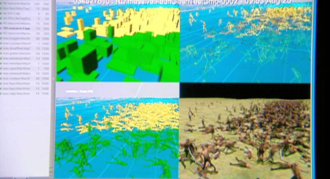 Jeff White (ILM, Creature Supervisor): What you do is, you build libraries as much as possible. So, we might have a library of running cheetahs or walking centaurs. And then we build those libraries on disc, and then you can load those in and sort of distribute them. That’s one thing the computer’s really good at doing, is replicating one thing many, many times.