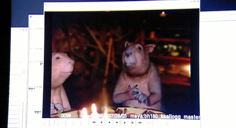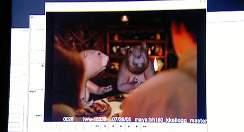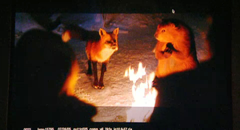 David Schaub (Sony ImageWorks Animation Director): What we’re taking care of on this show is the Beavers, the wolves, and the Fox. The Fox, in the movie, is a fully CG fox. The wolves are sort of mixed live action with CG. Some of the trickier elements are mixing live action wolves in the same pack with the CG wolves – put in the same world and making them look completely believable, because, of course, that’s the trick.
