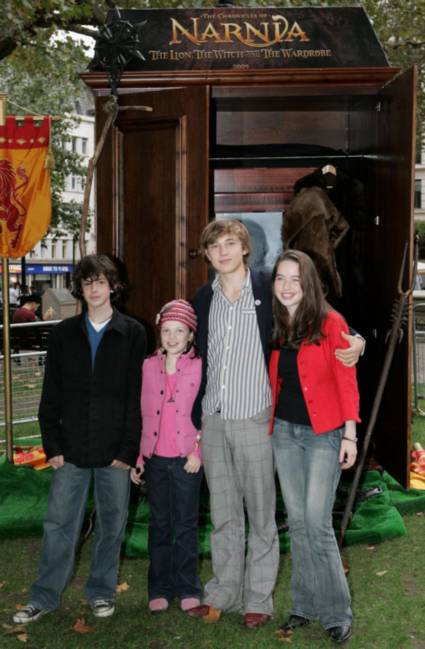 From Ireland Online: William Moseley, 18, from Gloucestershire, plays Peter, and Skandar Keynes, 14, from London, is Edmund. Keynes is from the same school as Harry Potter star Daniel Radcliffe. The youngest of the four, Georgie Henley, 10, from Ilkley, West Yorkshire, who stars as Lucy, is making her professional acting debut. “This is my first movie so it’s quite overwhelming for me, but it’s amazing,” she said. “I don’t want to sound selfish or anything, but I kind of like being in the spotlight. It’s nice to be noticed.” Sixteen-year-old Anna Popplewell, who played Colin Firth’s daughter in the film Girl with a Pearl Earring, is Susan. She said: “We actually did a lot of our snow scenes in a studio in New Zealand. “It was pretty weird pretending to be freezing in these huge coats while we were in a boiling hot studio.” Her sister Lulu appeared in Love Actually and her brother Freddie was in recent film Peter Pan.