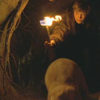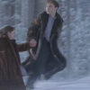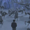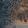 Edmund in the forest in his bathrobe. He hears some sort of roaring. (Wolves? Polar bears?)
