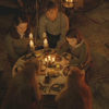 Shot of Susan, Peter, and Lucy at beavers’ table.