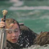 Peter grabbing somone (Susan) in water, holding on to sword (same as T.1)