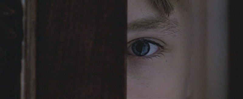 An eye (Edmund’s) looking through a crack in the door.