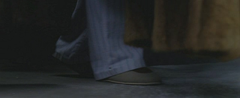 A foot (Ed’s) walking through the coats.