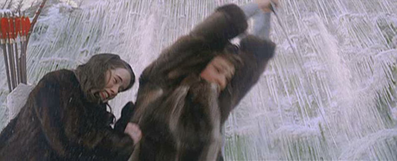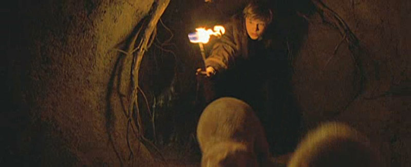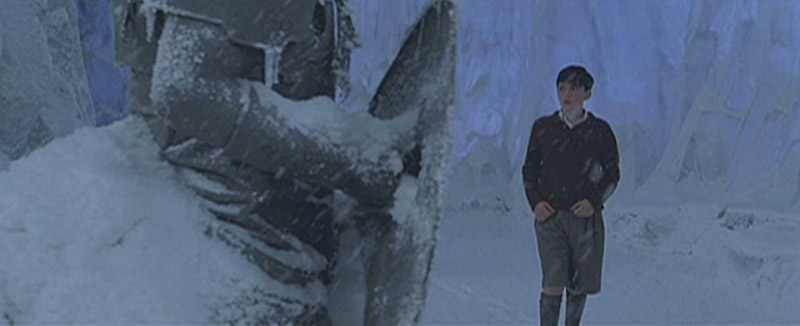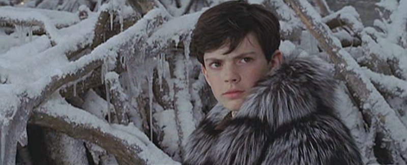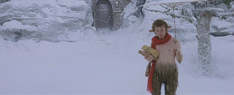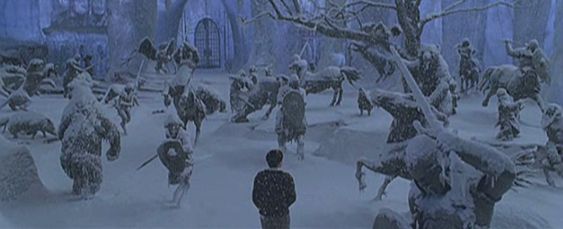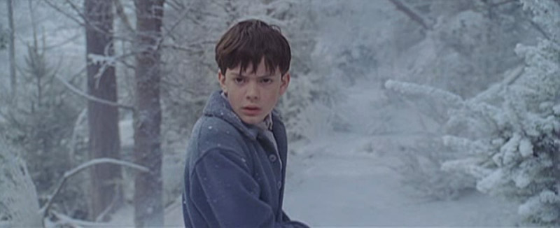 Edmund in the forest in his bathrobe. He hears some sort of roaring. (Wolves? Polar bears?)
