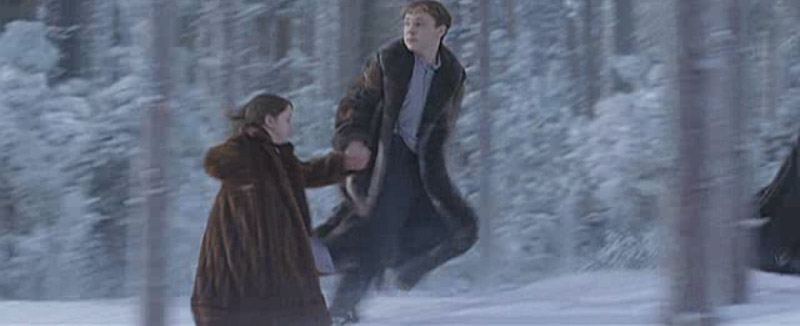Tumnus and Lucy running.