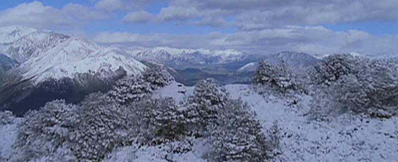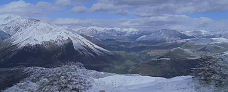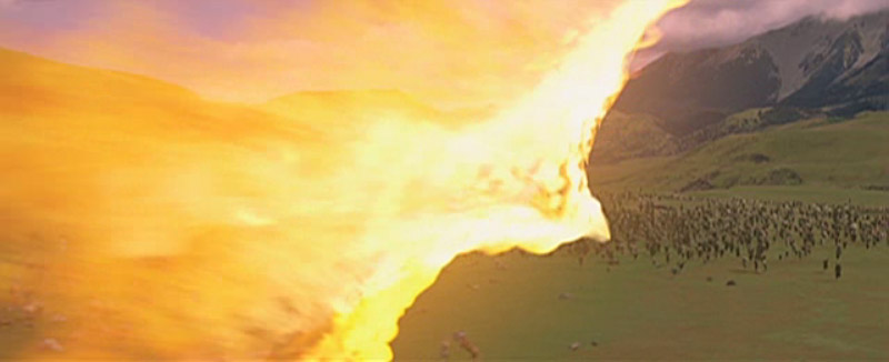 LOTR-esque shot flying over mountains