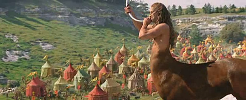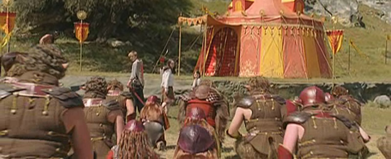 Children in front of tent, Aslan’s army bowing (same as first trailer)