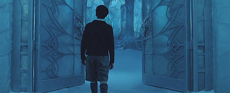 Edmund walking through ice doors