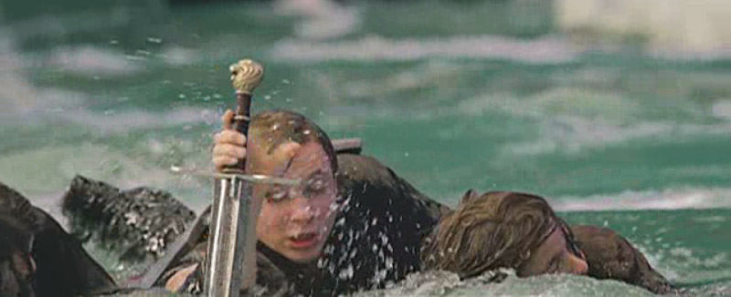 Peter grabbing somone (Susan) in water, holding on to sword (same as T.1)