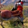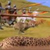 Now our point of view is facing them, ground-level, as the charging centaurs point their swords to the enemy. Cats snarl, and horses whinny. Warthogs also join in the rush to battle.