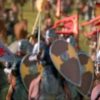 The music takes on a military tone. This charge is glorious, but down to business. Fauns with spears and battle banners rush past us.