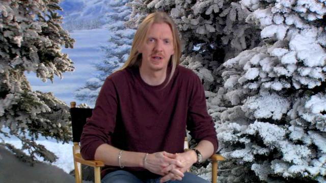 First, we see the director. He is sitting in a chair, with a snowy forest background behind him.