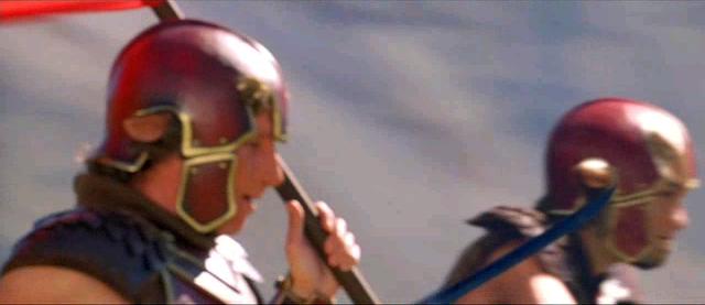 With the enemy almost upon them, Peter slowly reaches up and pulls down the face-guard of his helmet, obscuring his head.