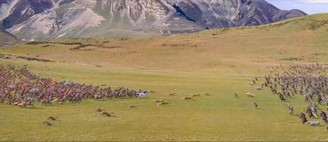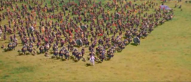 We now see a very drawn-back view of the two armies, the one we’ve seen from the trailer. Cats are outpacing Peter, but he is still leading the rest of the army.