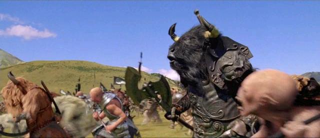 Shot of General Otmin, with a very deep and rumbling voice, issuing a battle with more of a grunt than a scream: “Forward!” His macabre army needs no urging; they stomp forward.