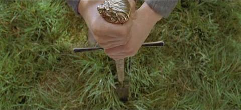 (Shot of Peter putting his sword back into his sheath.)