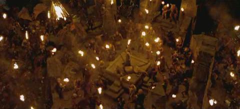 (Shot of Peter running on rocks by the battlefield, and Peter directing his troops.)