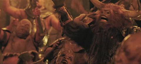 (Various shots of Narnian creatures including General Otmin, a Cyclops, some random baddies)