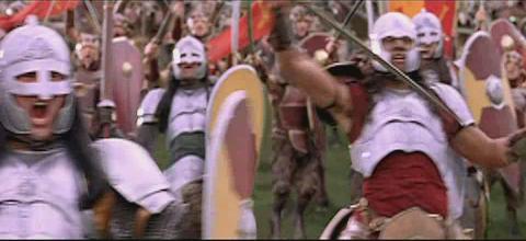 (Shots of Peter and his army charging)