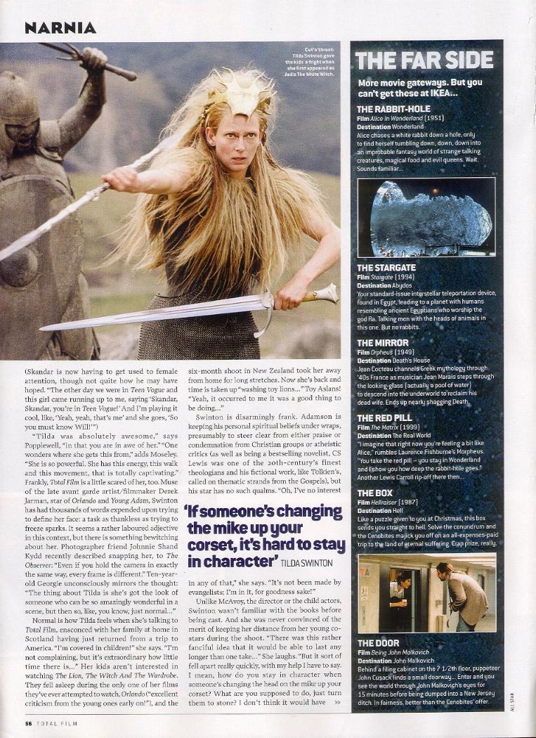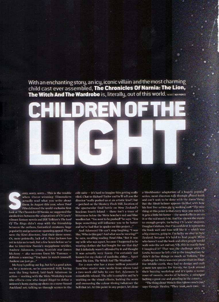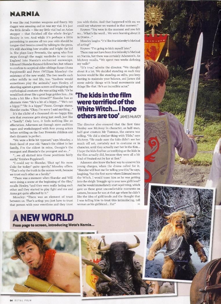 Total Film Magazine has an excellent article containing conversations with Andrew Adamson, Tilda Swinton, James McAvoy, and the four children. Many thanks to Jints for scanning the article. You can also read our transcription of it below.