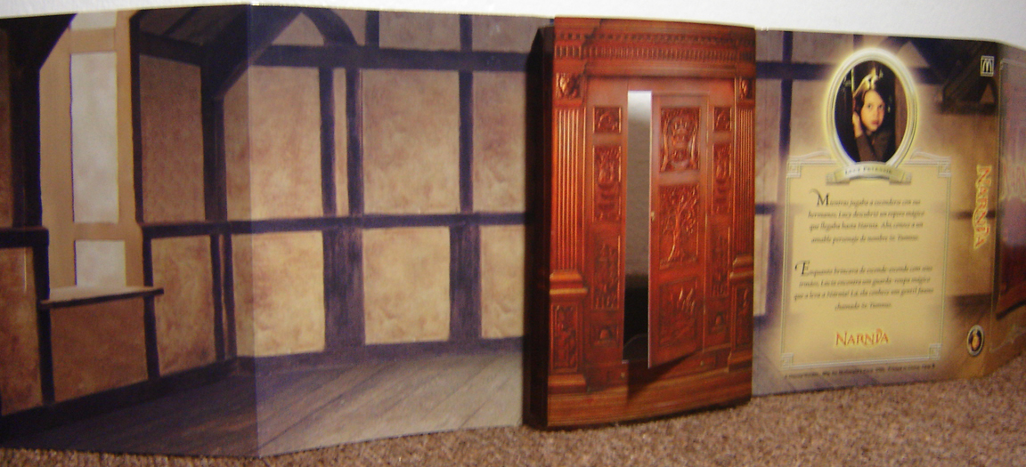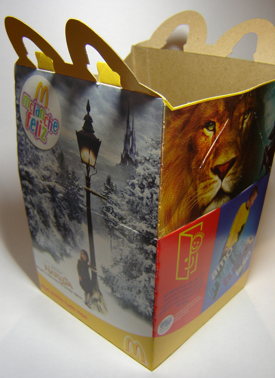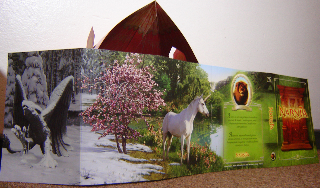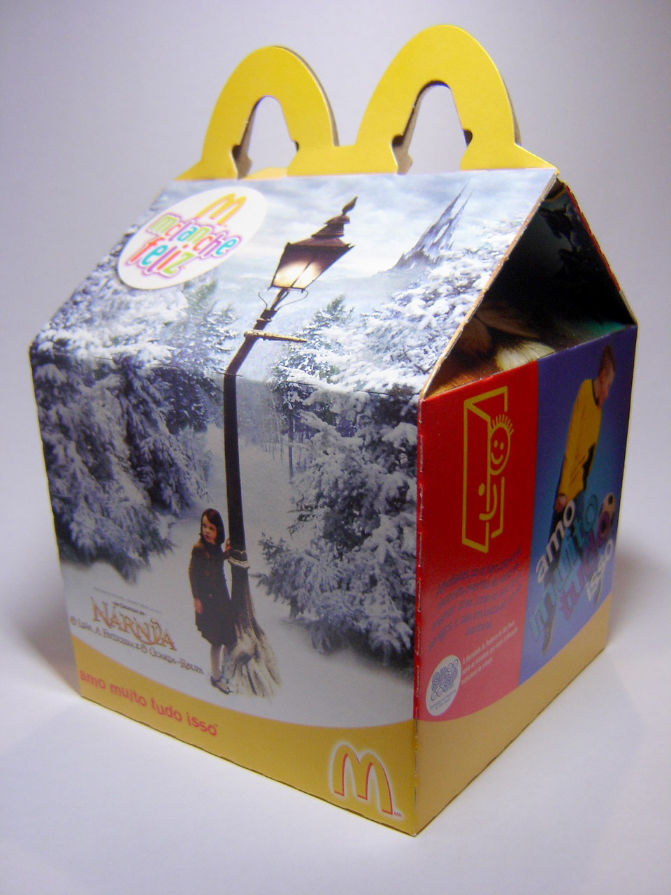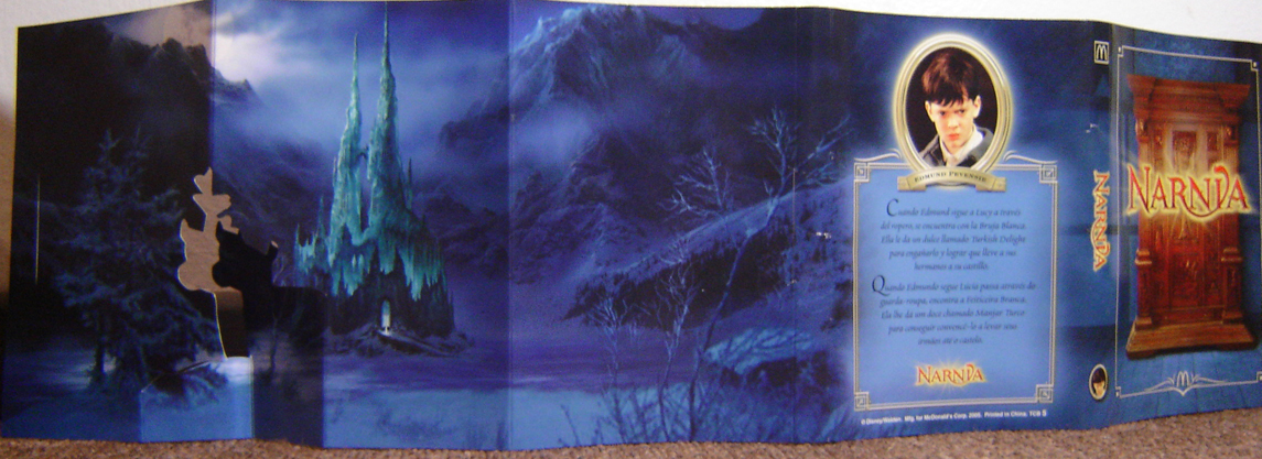 Characters from the new Walt Disney Pictures/Walden Media live action theatrical release The Chronicles of Narnia: The Lion, The Witch and The Wardrobe are climbing through the enchanted wardrobe into McDonald’s Happy Meals and Mighty Kids Meals beginning December 16, 2005 through January 12, 2006. McDonald’s guests will receive one of eight characters and a specially designed pop-up diorama inspired by the film, with the purchase of a Happy Meal® or Mighty Kids Meal®, at participating restaurants nationwide, while supplies last.