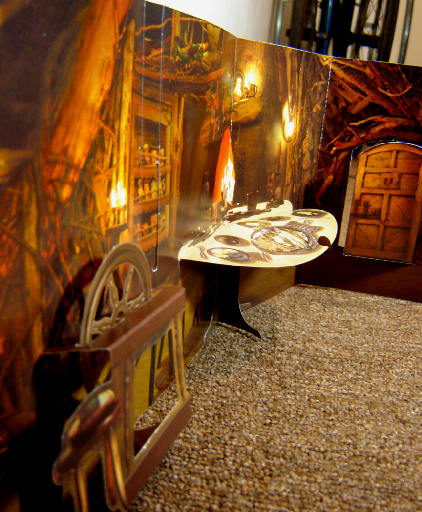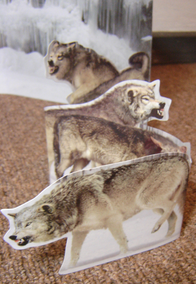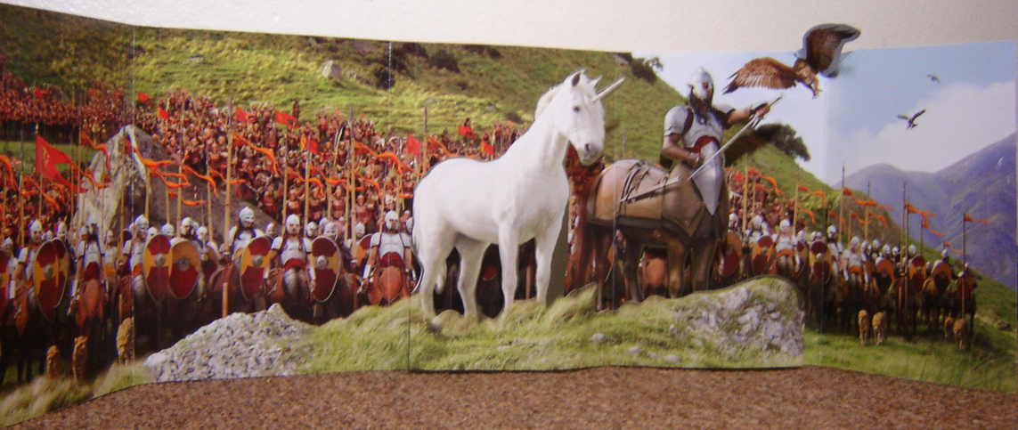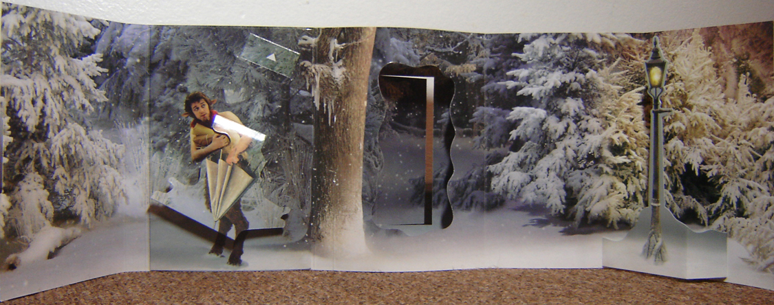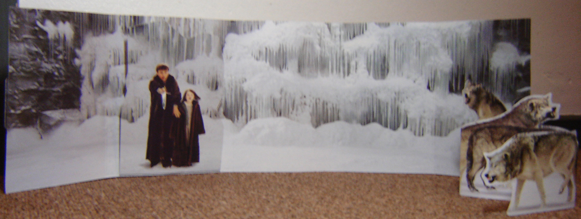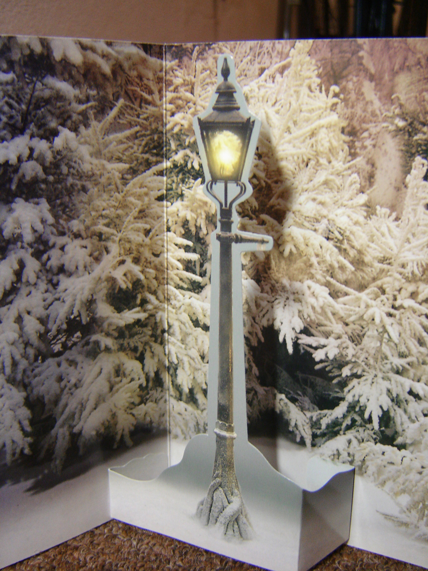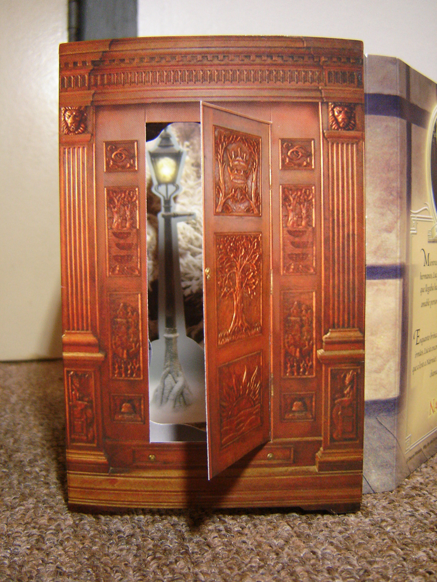 The White Witch and her Castle features The White Witch, Jadis, who raises her wand as if to cast a spell when the lever in her back is pushed, and an elaborate diorama of her castle and dungeon. Susan Pevensie and the Wolves includes a picturesque winter scene diorama with pop-up wolves and Peter with his sword.
