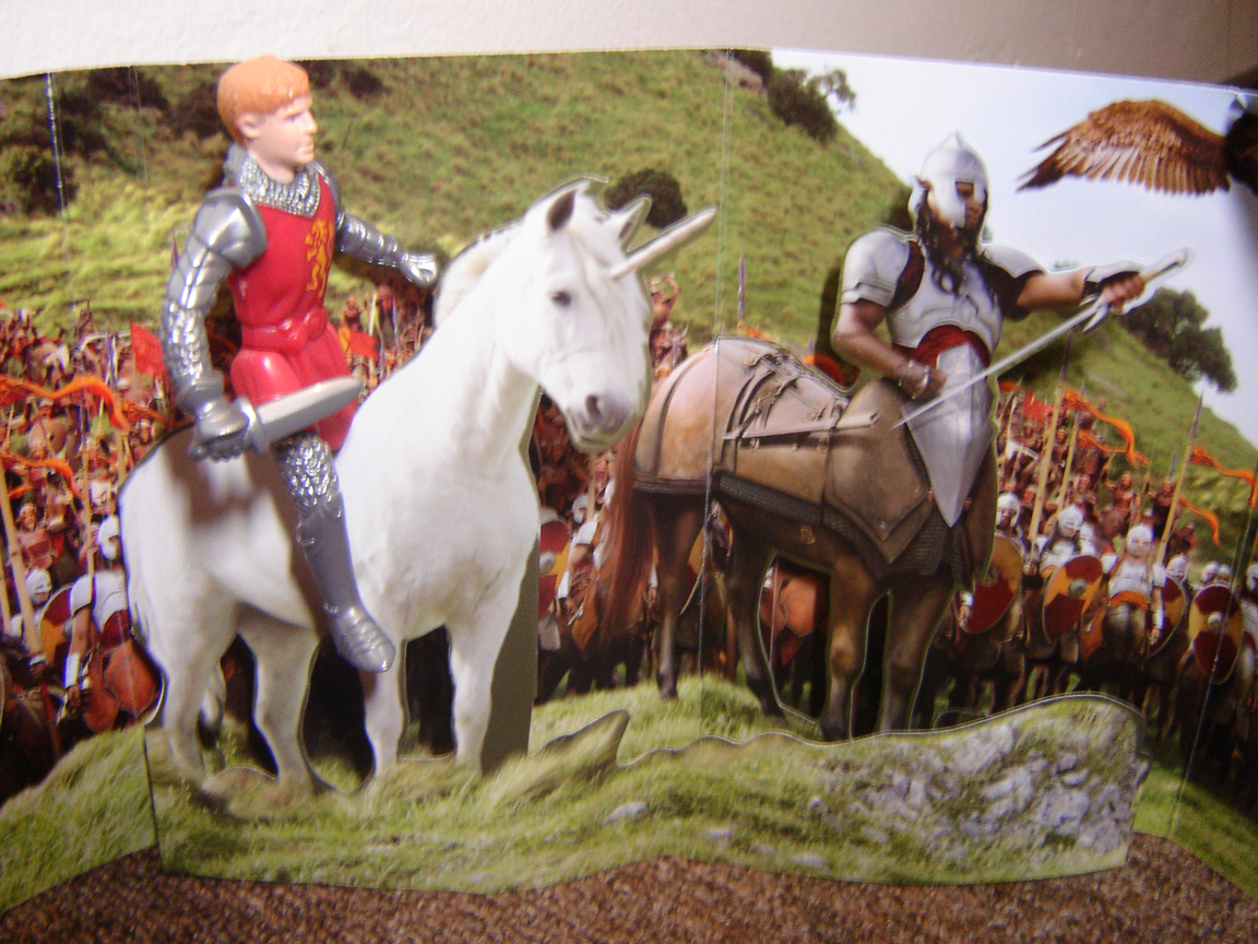 Touch the lever on Susan’s back and she raises her magic horn to her lips. Aslan and the Return of Spring features a pop-up dimensional tent for Aslan – press the back of his mane to open and close his mighty jaws. Rounding out the elaborate collection is Peter Pevensie and Aslan’s Army. Peter leads his troops with articulated arms and legs, and the prelude to battle diorama features a pop-up satyr, unicorn, and horse Peter can ride.