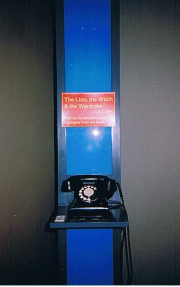 In one corner a screen is continually showing the trailer and some background interviews. In another an old fashioned black telephone invites us to pick up the receiver and hear extracts from the book of LWW. In the centre of the room is the ubiquitous lamp-post, this time with little snow and unlit.