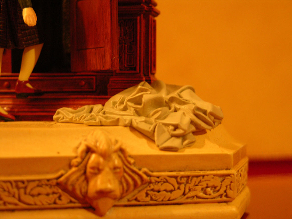 The Gift Set includes two highly detailed bookends of Lucy and Tumnus. I especially like the detail in the wardrobe carvings (which tell the story of The Magician’s Nephew)