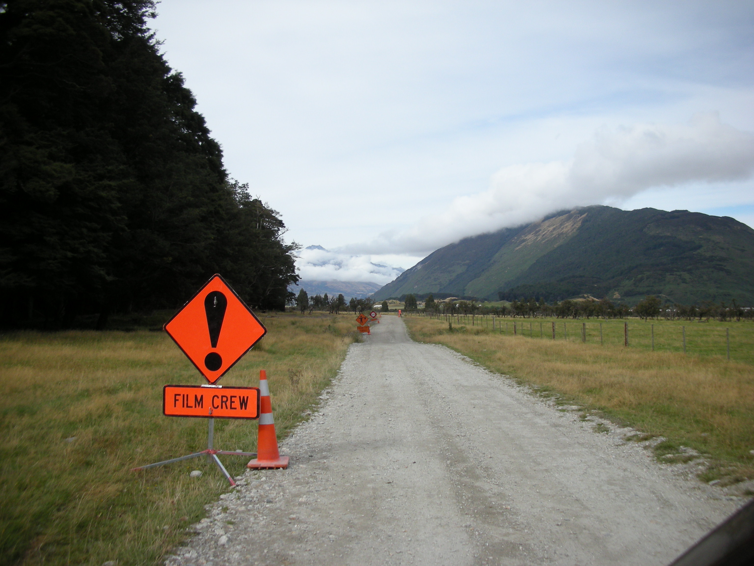 There’s a little place called Paradise near Glenorchy, just north of Queenstown and this too was another LOTR location. The problem is- the road to paradise is hard to find and extremely treacherous at times. We crept slowly along a dirt track for ages, hoping not to damage our vehicle and just as we decided that we should turn and go back we approached a sign. The sign says ‘Film Crew’.