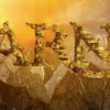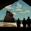 OVERHEAD SHOT OF ALL FOUR STANDING IN THE CENTER OF THE RUINS