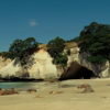 CHILDREN EXIT A NATURAL TUNNEL ONTO A BEACH. SHOT OF ALL FOUR IN THEIR SCHOOL UNIFORMS. WIDE SHOT OF BEACH. CLOSE UP OF SUSAN. CHILDREN TAKE OFF RUNNING DOWN THE BEACH LAUGHING
