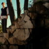 SHOT OF LUCY LOOKING OUT FROM THE RUINS