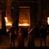 TRANSITIONS TO ASLANS HOW AND THE LIGHTING OF THE STONE CARVINGS ROOM. SWITCH TO SHOT OF CASPIAN AND NIKABRIK.