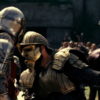 SHOT OF CASPIAN RAISING HIS SWORD. UNDERGROUND SHOT. NIGHT SHOT OF A BREAKING GATE. SUSAN BEING SAVED FROM FALLING. WHITE WITCH APPEARS TO BE LOCKED IN ICE. SHE REACHES OUT FOR CASPIAN. SUSAN THROWS SOMETHING. ICE SHATTERS. CATAPAULT LAUNCH. WIDE SHOT OF ARMY. SHOT OF LUCY. TREES MOVE. SHOT OF ASLAN.