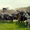SHOT OF CASPIAN FIGHTING. SHOT OF ARMY. SHOT OF PETER AND EDMUND. SHOT OF REARING HORSE. SHOT OF ASLAN ROARING. SHOT OF CHARGING WARRIORS WITH PETER AND SUSAN.