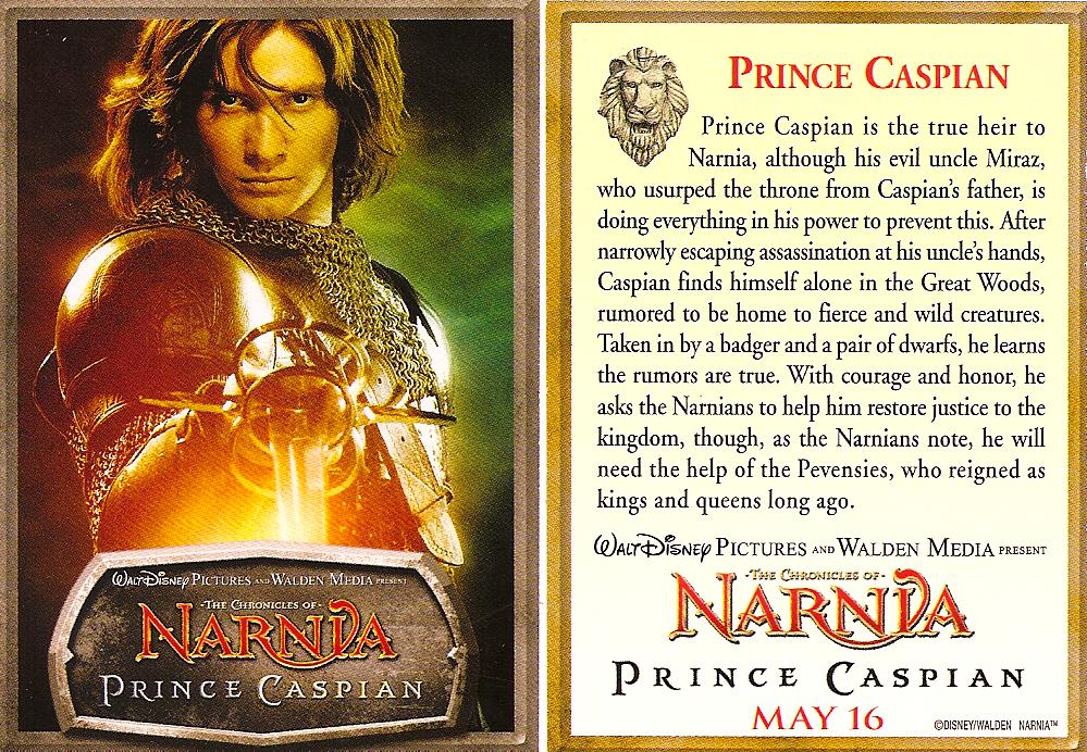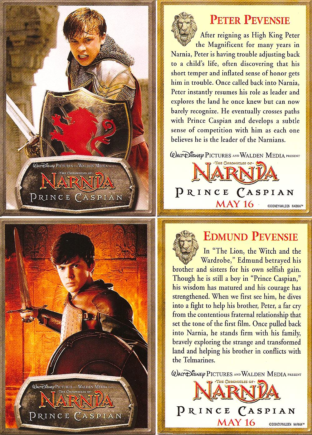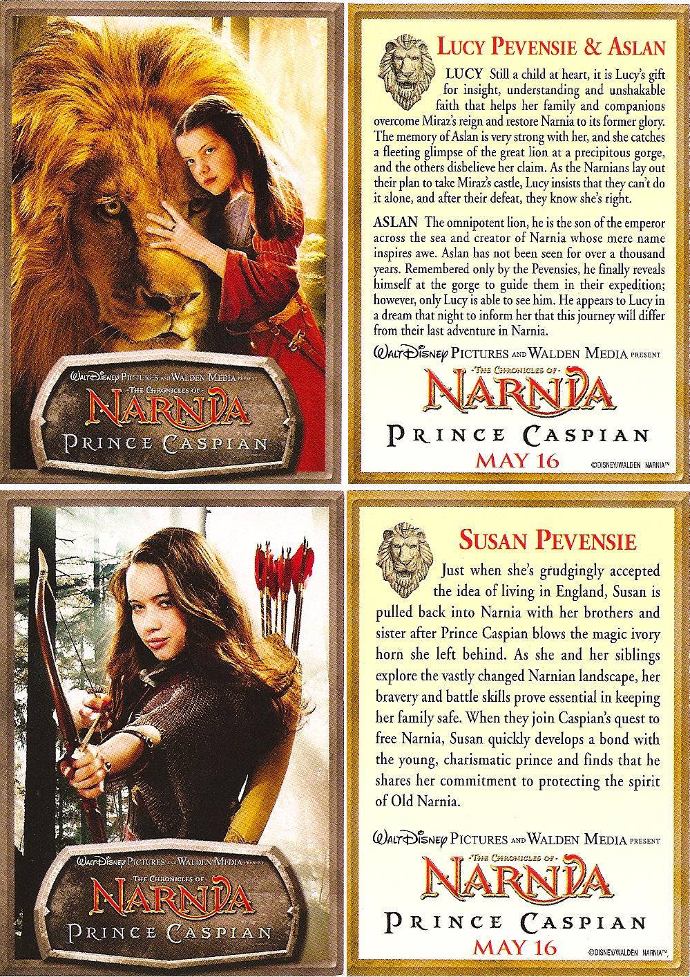 Disney Store Handing Out Cards by Glumpuddle · May 7, 2008 The Disney Store is currently handing out cards for the six main characters in Prince Caspian. The character descriptions on the back contain a few plot spoilers. Caspian Disney Card Peter and Edmund Disney Cards Lucy and Susan Disney Cards