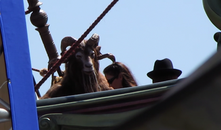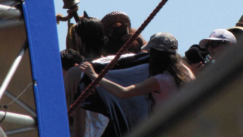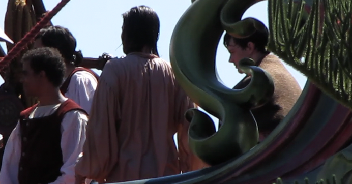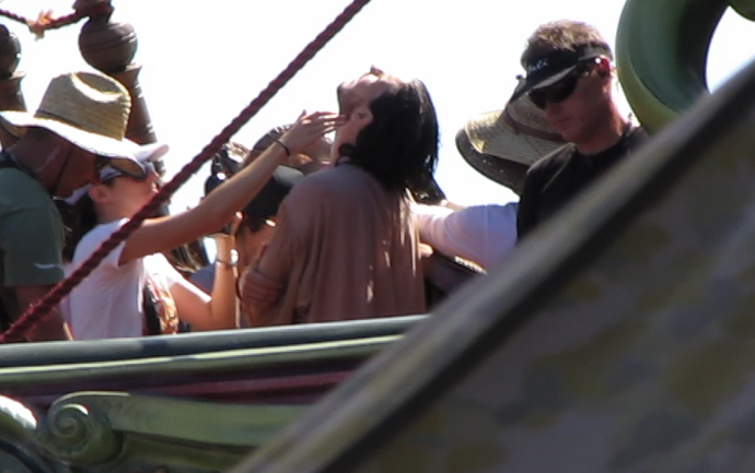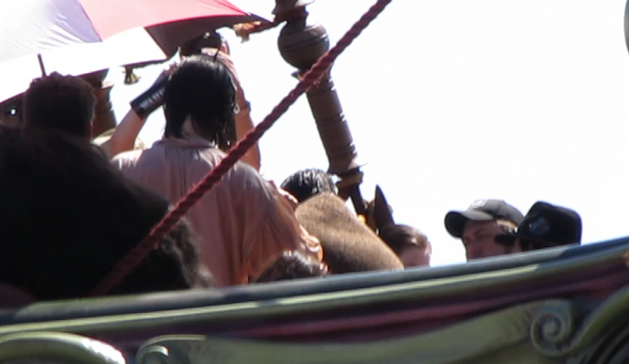 There was a massive blue screen hanging by a crane in front of the ship so no one could see anything! There was this very small gap in which you could see some of the crew walking around but there was no way to see any of the actual filming. They moved the ships direction after about an hour and a half which gave us some more space to see but it was still very small.