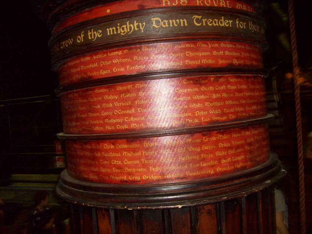 I think it is very cool that they have all of the people who worked on the Dawn Treader has their name on the ship! Everything is so amazing!