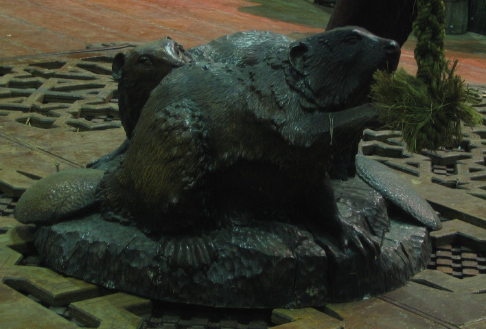 - One of the set of two beavers at the base of the fauns feet