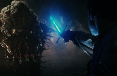 Sounds to me like when the serpent lunges at Ed (the shot towards the end of the recent trailer), Caspian tackles him out of the way. That's a pretty big spoiler imo.