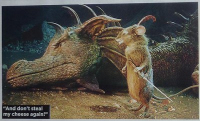 I like the picture of Eustace. 🙂 I know some people think he looks odd, but he's a dragon, and that's enough for me. I can't wait to see that scene with him and Reep in the movie. (Hmm. What cheese does he mean?)