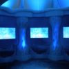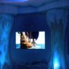 The Ice Palace has an arched entrance and includes a dome with a large snow globe like object with Lucy and Edmund looking at the Dawn Treader painting on the inside of it. Then there is a dome on the inside of which there is simulated falling snow and screens all around continuously playing the trailers for VDT. Also, I noticed at least one monitor on the outside of it and it was playing the βTransition to Narnia Clipβ.