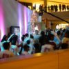 When the ceremony time came, Will and Georgie first read something over the public address system but unfortunately I could not understand a word. Michael Apted just watched from the level above and was a spectator like anyone else. Next, Georgie and Will sang βSanta Claus is Coming to Townβ which I could hear the words to and they did a great job singing and looked like they were having fun doing it. Then the Ice Palace was officially lit up and opened.
