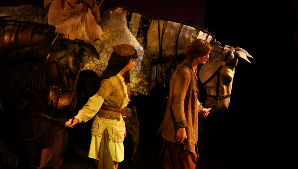 One of the greatest parts of the play is undoubtedly the puppets. All of the puppets are extraordinary, but the horses are the true highlight of the show. They are just as good, if not even better, than any puppet on Broadway or the West End. The Destrier puppet used in Logos’ version of Prince Caspian was amazing, but the puppet team (lead by puppet designer Justin Swain, technical director Ken Hines, sculptor Harrell Whittington, and puppet apprentice Isaiah Johnson) outdid themselves in creating even better horse puppets to bring Bree and Hwin to life.
