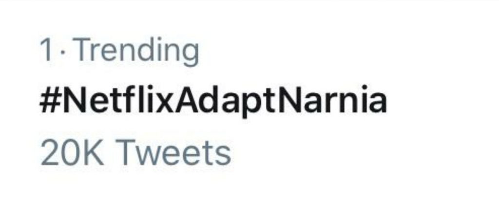 This prompted Brazilian fans to organize a hashtag to alert Netflix that they’re still very interested in Narnia adaptations and want news. The plan was simple – starting at 5 pm (EST) fans would tweet as many times as possible using the #NetflixAdaptNarnia tag.