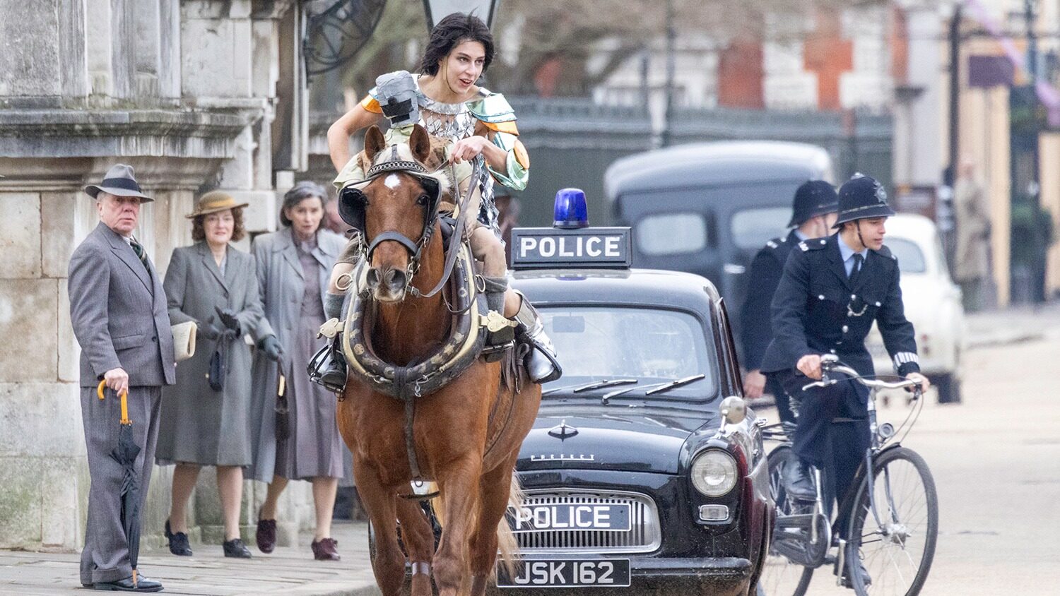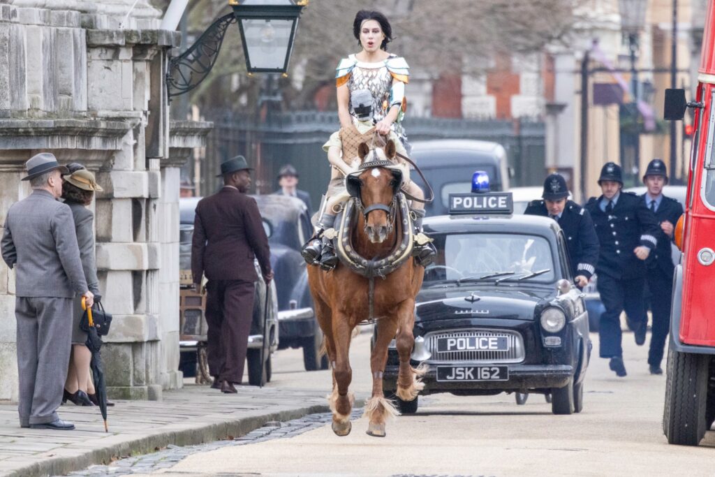 As with earlier sightings from this sequence, Jadis is once again seen moving through mid-century London streets, pursued by police, with Digory seemingly being held captive. While Emma Mackey has been cast as the White Witch, all publicly visible filming of this chase so far has made use of a stunt double, rather than Mackey herself.