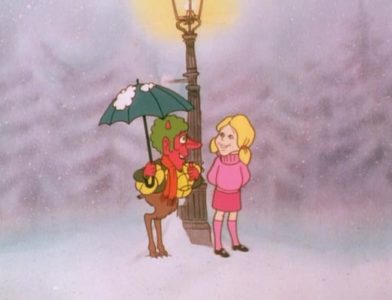 Much of the dialogue comes from the book, but there are some notable changes: The story actually opens with Lucy jumping out of the wardrobe and claiming to have met a faun – her adventure with Tumnus is then shown in flashback. The captain of the Witch’s secret police is named Fenris Ulf (the name Lewis gave him in early American editions) instead of Maugrim. Father Christmas does not appear – the Pevensies receive their gifts from Aslan.